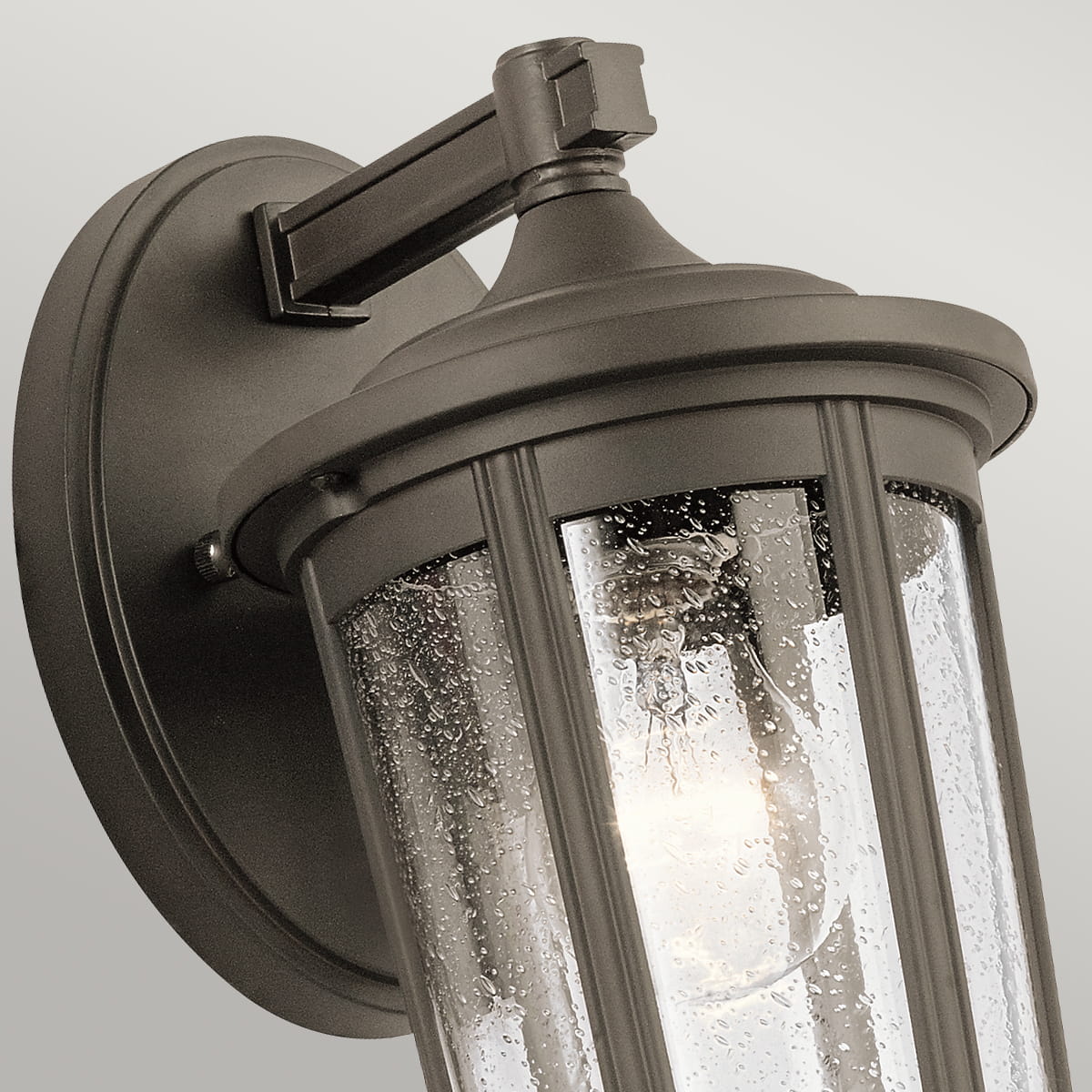 Latarnia wykonana jest z eleganckiego aluminium, które w połączeniu ze szkłem z delikatnymi bąbelkami powietrza tworzy niezwykle harmonijną kompozycję. Dzięki powłoce w odcieniu starego brązu, kinkiet wprowadza nostalgiczny klimat, jednocześnie zachowując świeżość i współczesny charakter. Niezależnie od stylu architektonicznego, w jakim utrzymany jest budynek, lampa doskonale go dopełni, podkreślając jego wyjątkowy charakter.