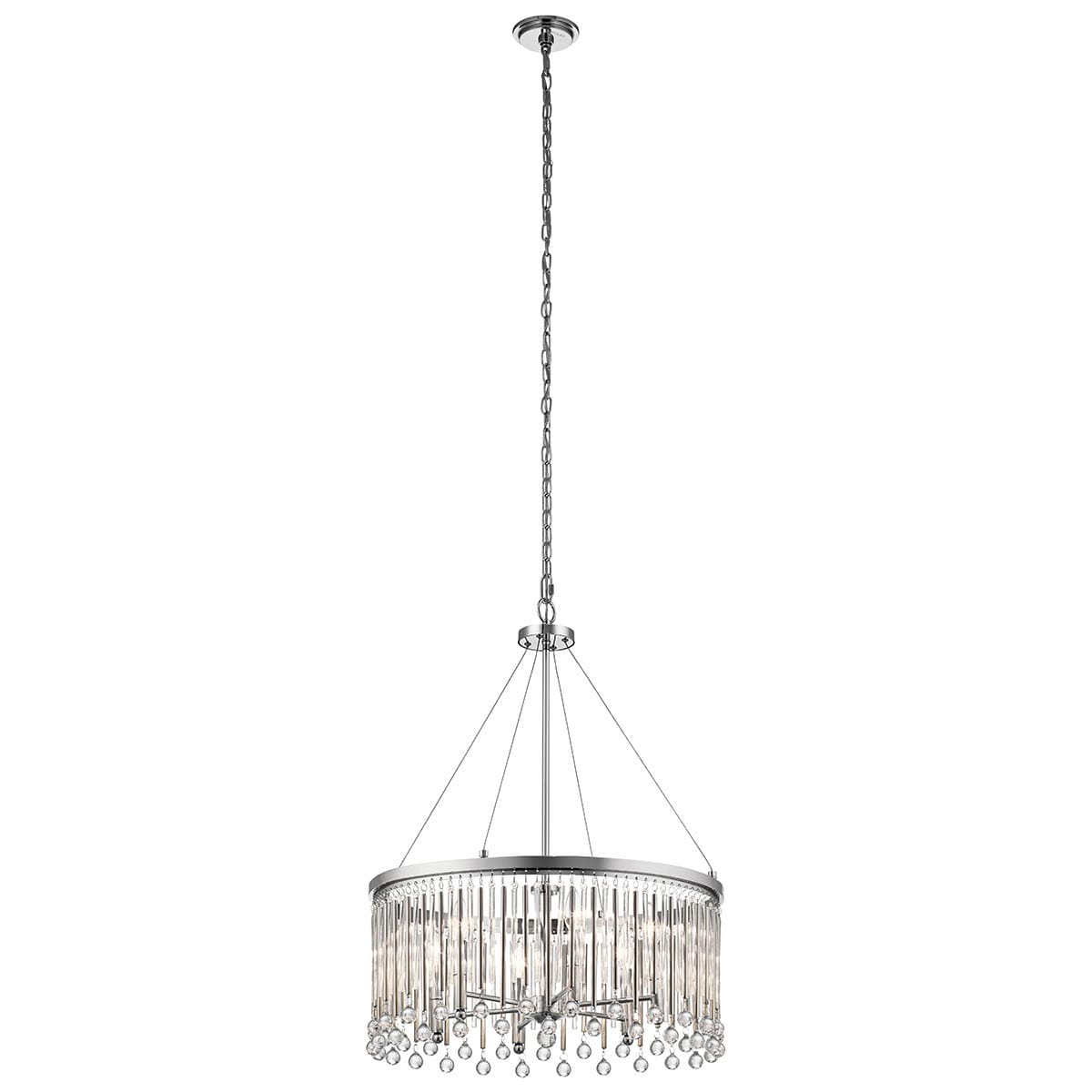 Seria Piper charakteryzuje się kunsztownym doborem materiałów, gdzie pręty z polerowanego chromu idealnie harmonizują się z przejrzystością szklanych koralików. Taka kompozycja nie tylko podkreśla walory estetyczne żyrandola, lecz także dodaje wnętrzom odcienia luksusu i dystyngowanego stylu. Metalowy, chromowany wykończenie w połączeniu z przezroczystym szkłem tworzy widowiskowy efekt wizualny, który przyciąga wzrok i wprowadza atmosferę luksusu.